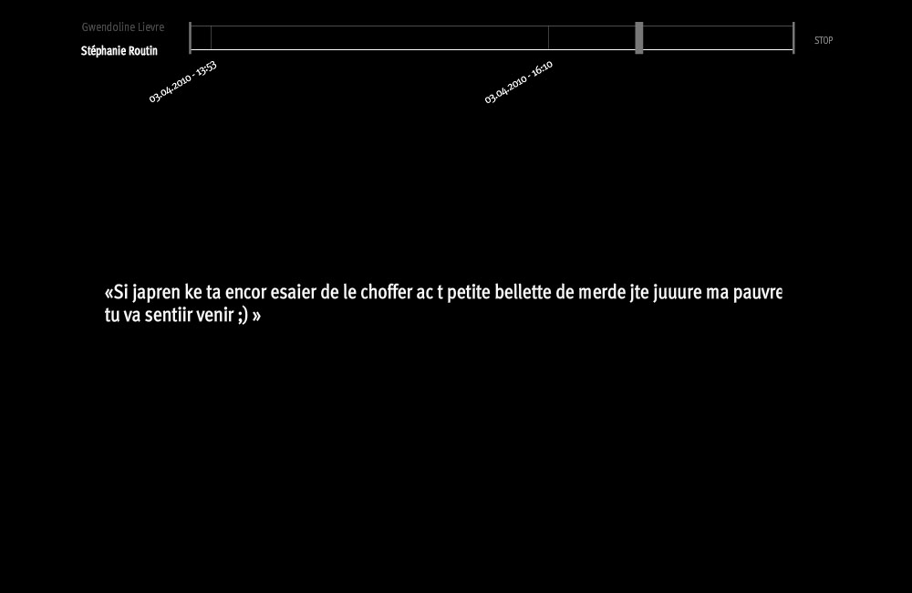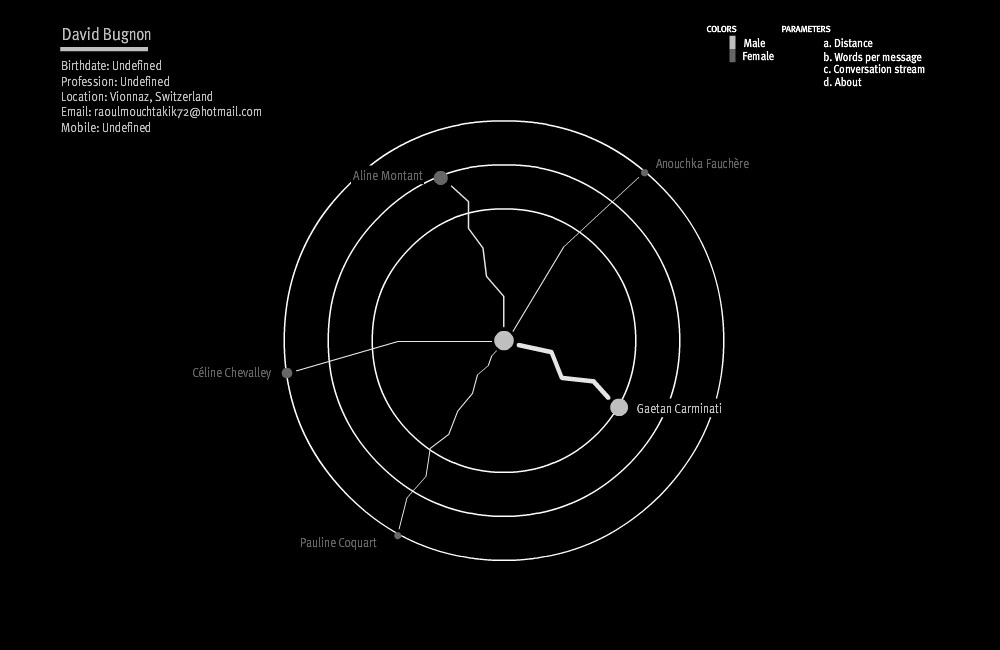 Visualization of private discussions coming from some hacked Facebook accounts.